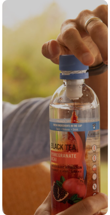 At the heart of BevWellness innovation is our revolutionary cap technology. Designed to store and protect key ingredients under pressure, the cap ensures freshness, eliminates the need for preservatives, and provides precise dosing. With a simple twist, ingredients are instantly mixed, delivering a fresh, vibrant product every time. This cutting-edge design also supports sustainability by enabling reusable packaging and reducing waste.
